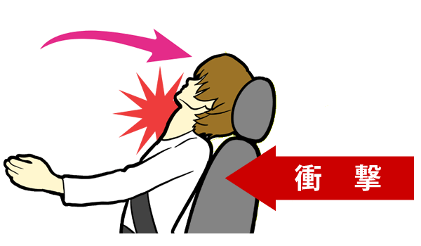 これは事故をうけた時は上図のように体全体に大きな衝撃が加わるためで、実際には腰や体全体に強い損傷を受けるためです。