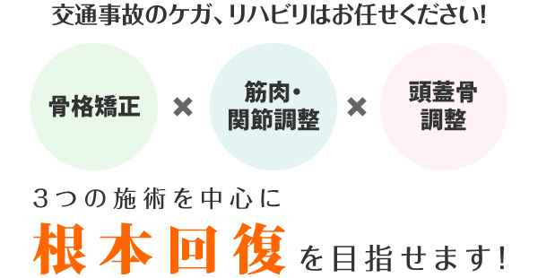 3つの施術をメインに症状にあわせた施術を組み合わせて改善に導きます