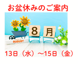 お盆休みのご案内